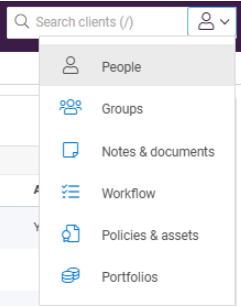 To search for tasks allocated to a specific client, either from the main view or a specific saved task view: